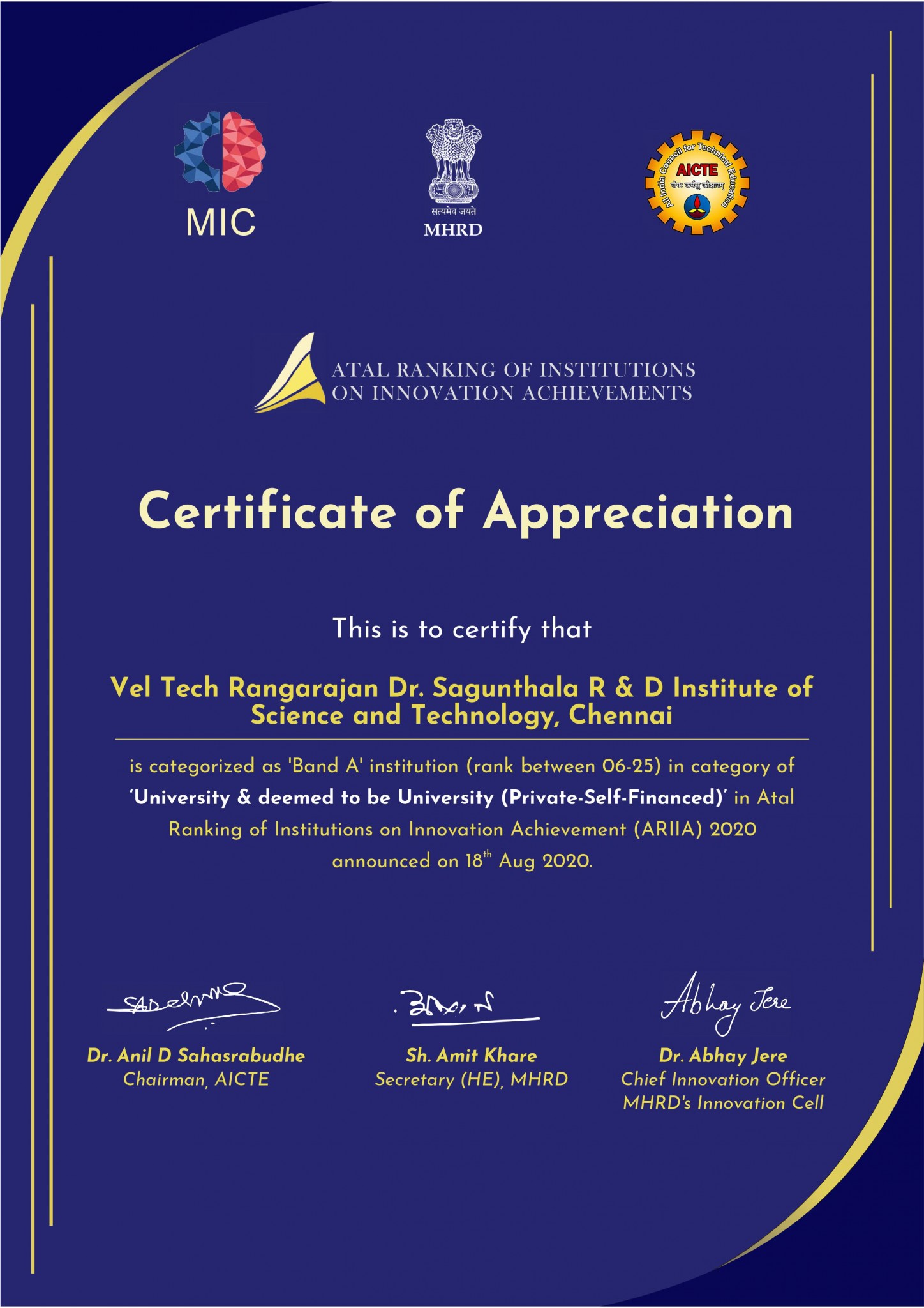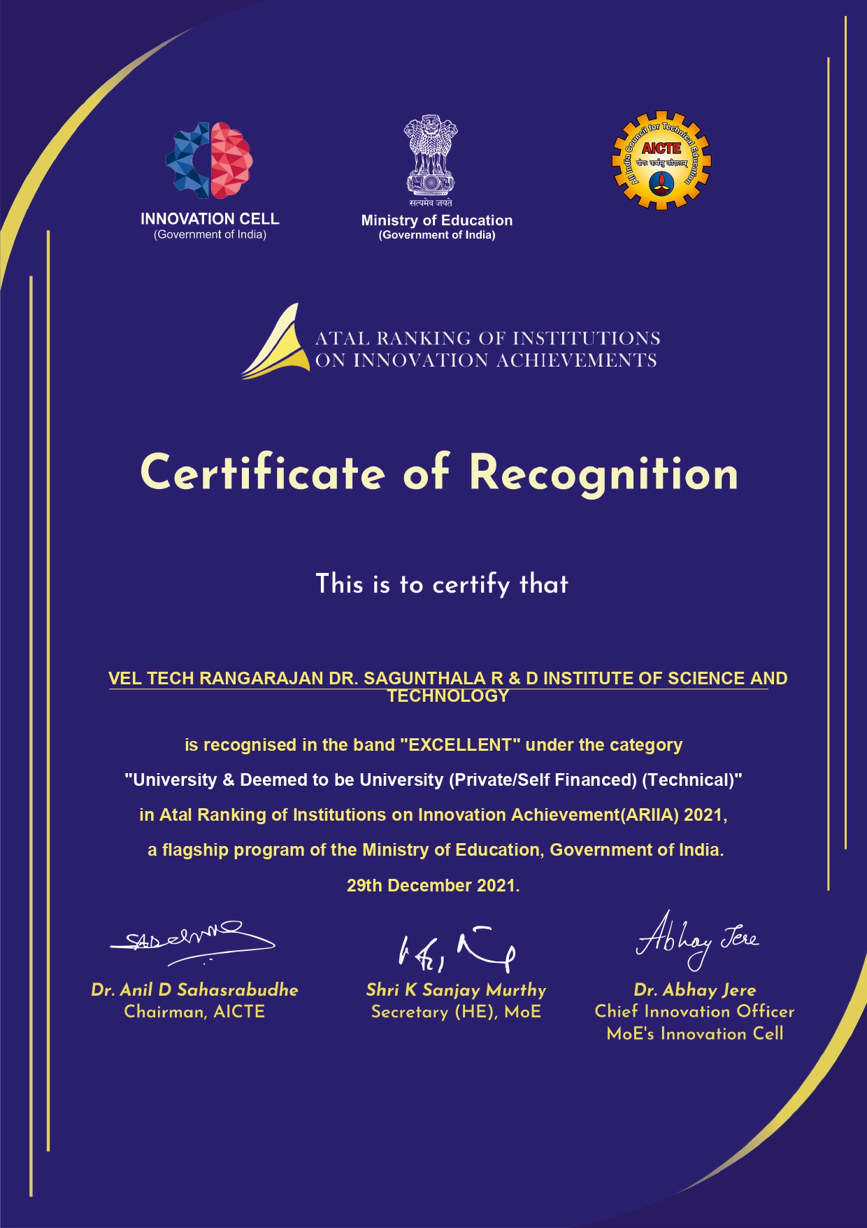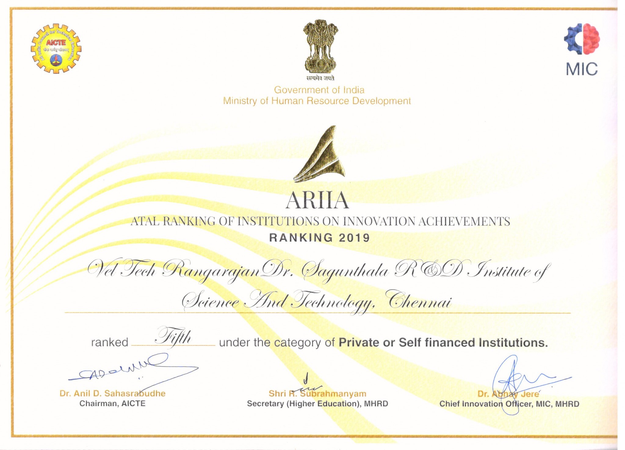 Atal Ranking of Institutions on Innovation Achievements (ARIIA) is an initiative of Ministry of Education (MOE), Govt. of India to systematically rank all major higher educational institutions and universities in India on indicators related to “Innovation and Entrepreneurship Development” amongst students and faculties.