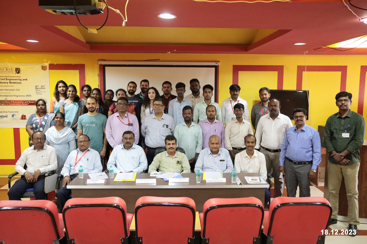 Date/Time Dec 18, 2023 FDP ON CHALLENGES ON IMPLEMENTATION OF AUTOMATION AND SMART SENSING TECHNOLOGIES IN CONSTRUCTION SECTOR View Gallery