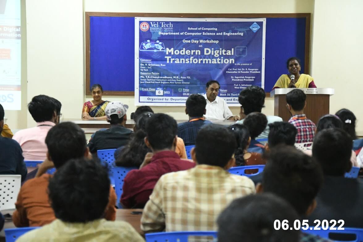 Date/Time May 06, 2022 One Day Workshop on Modern Digital Transformation by Department of CSE- VEL TECH View Gallery