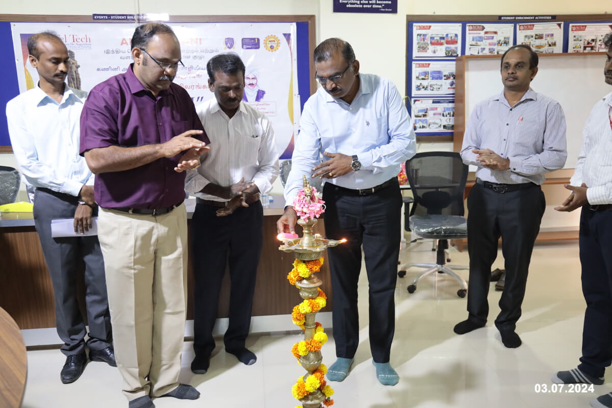 The welcome address was given by Mrs. D. Hemalatha, who welcomed the delegates, chief guests, and participants present at the inaugural event. She highlighted the motive behind the AICTE-sponsored event VAANI and its significance. The proceedings continued with the Tamil Thai Vazhthu, followed by the lighting of the lamp by the delegates and chief guests, who were then honored by the Registrar and Deans.
