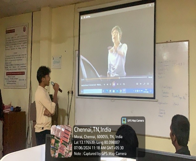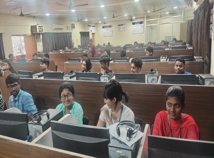 The lab sessions focus on developing both receptive and productive language skills. Students are trained through structured activities such as listening to speeches, TED Talks, conversations, interviews, and academic discussions, which help them improve comprehension and critical listening abilities. Speaking skills are developed through self-introductions, role-plays, group discussions, debates, mock interviews, extempore speeches, and technical presentations, enabling students to communicate confidently in professional and academic contexts.