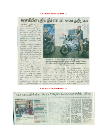 JUNE 8 2019 DINAMANI PAGE 16 JUNE 8 2019 THE HINDU PAGE 11