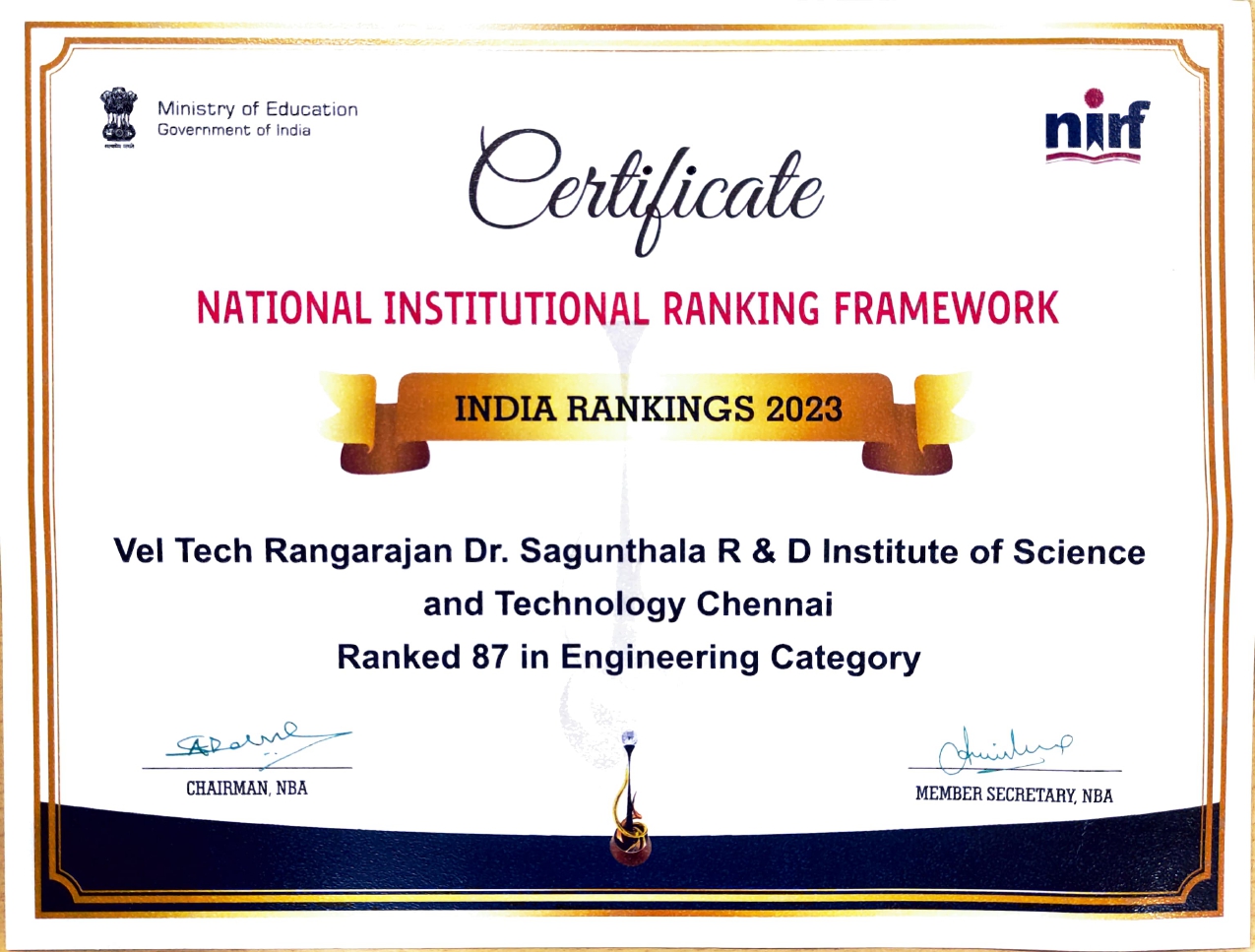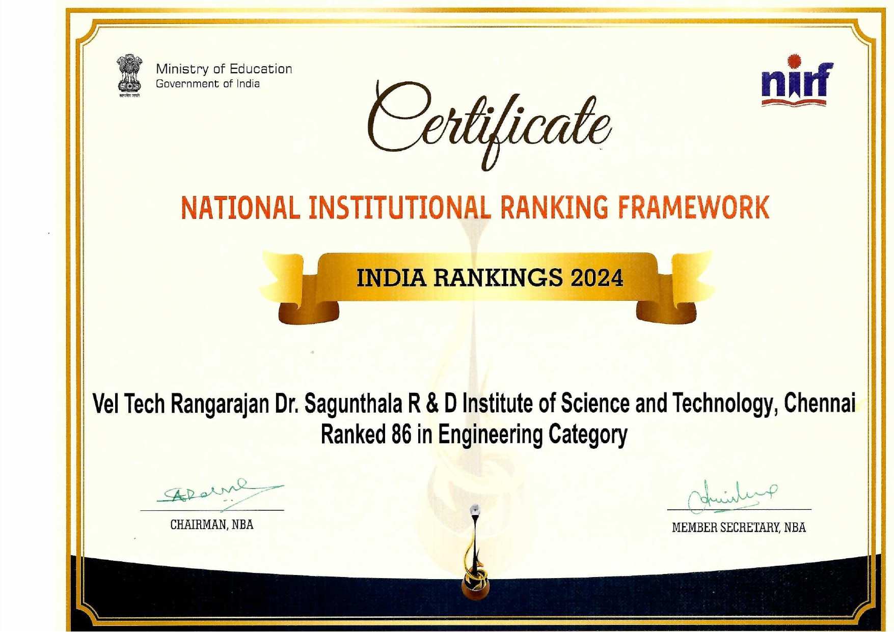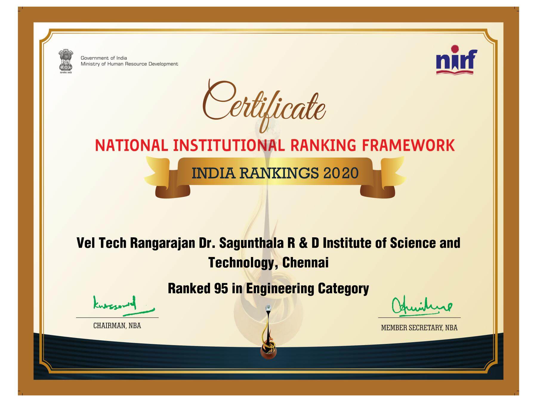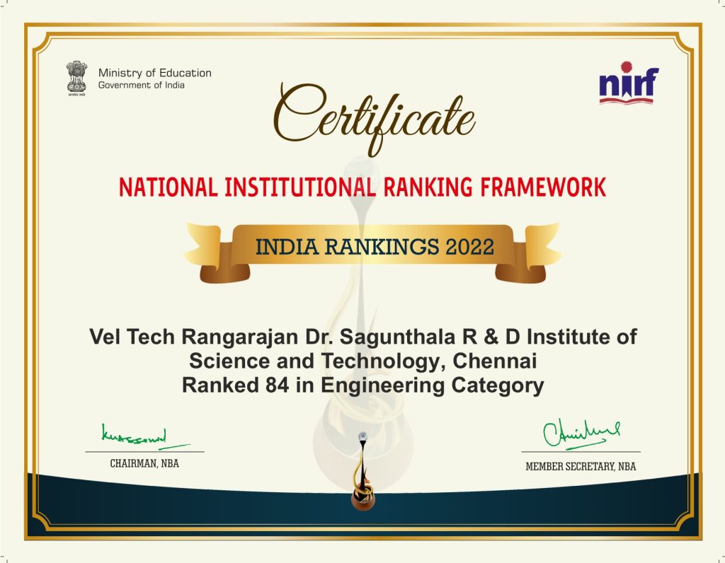 The National Institutional Ranking Framework (NIRF) was approved by the MHRD and launched by Honourable Minister of Human Resource Development on 29th September 2015. This framework outlines a methodology to rank institutions across the country. The methodology draws from the overall recommendations broad understanding arrived at by a Core Committee set up by MHRD, to identify the broad parameters for ranking various universities and institutions. The parameters broadly cover “Teaching, Learning and Resources,” “Research and Professional Practices,” “Graduation Outcomes,” “Outreach and Inclusivity,” and “Perception”.