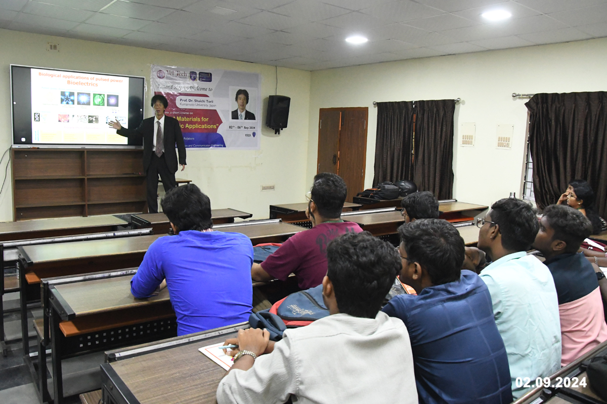 Prof. Dr. Shuichi Torii, Kumamoto University, Japan, delivered a short course on “Smart Materials for Electronic Applications” to the students of the Department of Electronics and Communication Engineering (ECE) from 02 September 2024 to 06 September 2024. The programme introduced advanced concepts in smart and functional materials, their properties, and applications in modern electronic and communication systems, thereby enhancing students’ understanding of emerging materials technologies